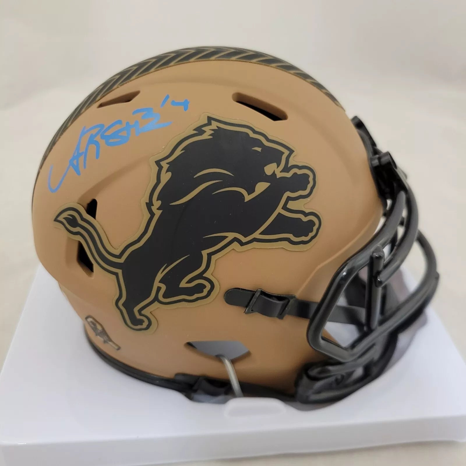 AMON RA ST BROWN AUTOGRAPHED / SIGNED DETROIT LIONS SALUTE TO SERVICE (STS 2) SPEED MINI HELMET WITH BECKETT QR