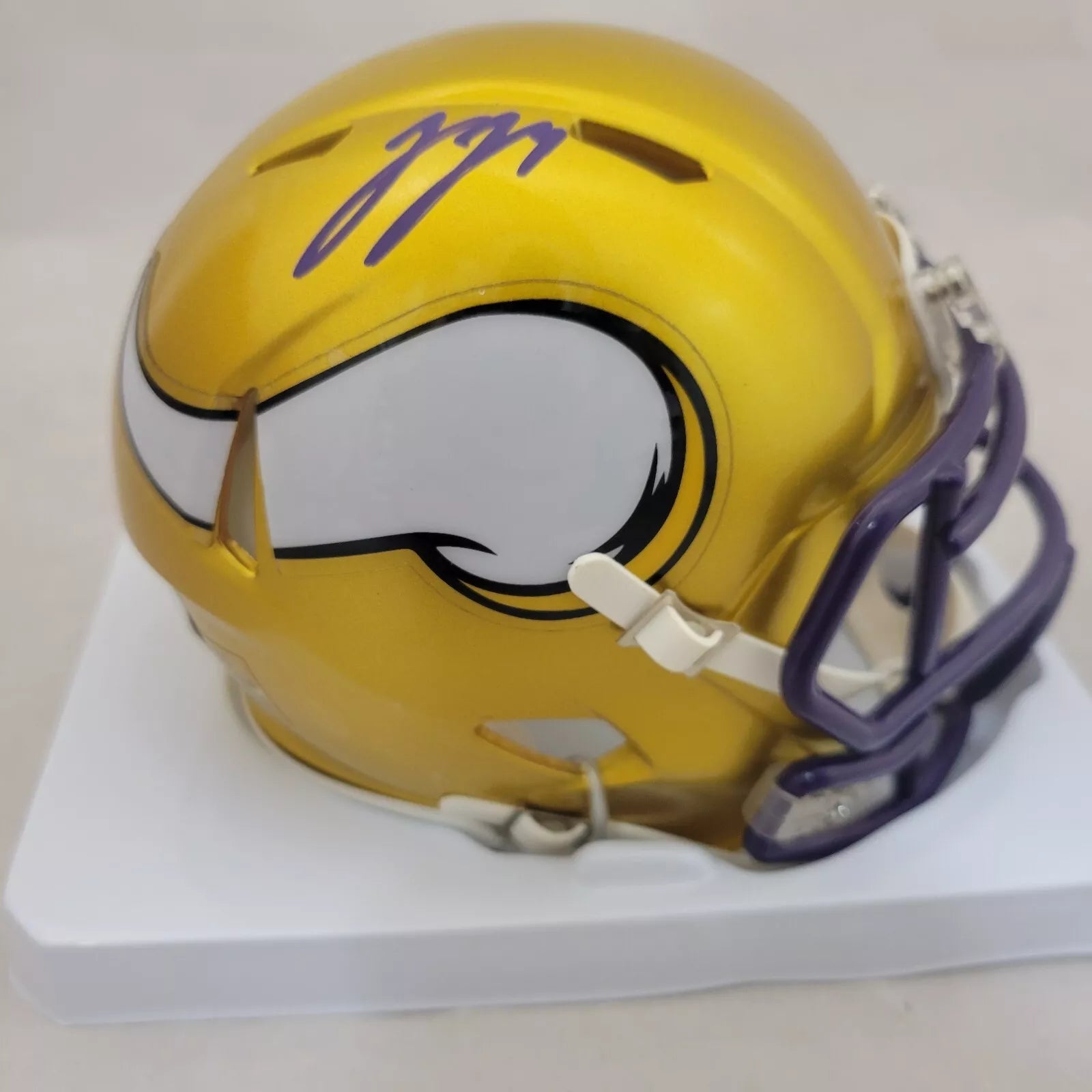 JJ MCCARTHY AUTOGRAPHED / SIGNED MINNESOTA VIKINGS FLASH SPEED MINI HELMET WITH BECKETT WITNESSED QR CODE HOLOGRAM COA