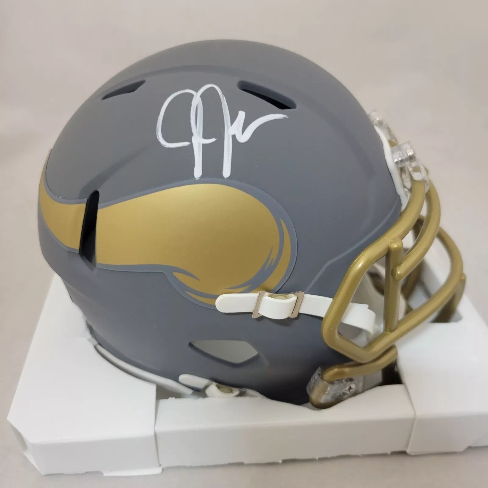 JUUSTIN JEFFERSON SIGNED MINNESOTA VIKINGS SLATE SPEED MINI HELMET BECKETT QR